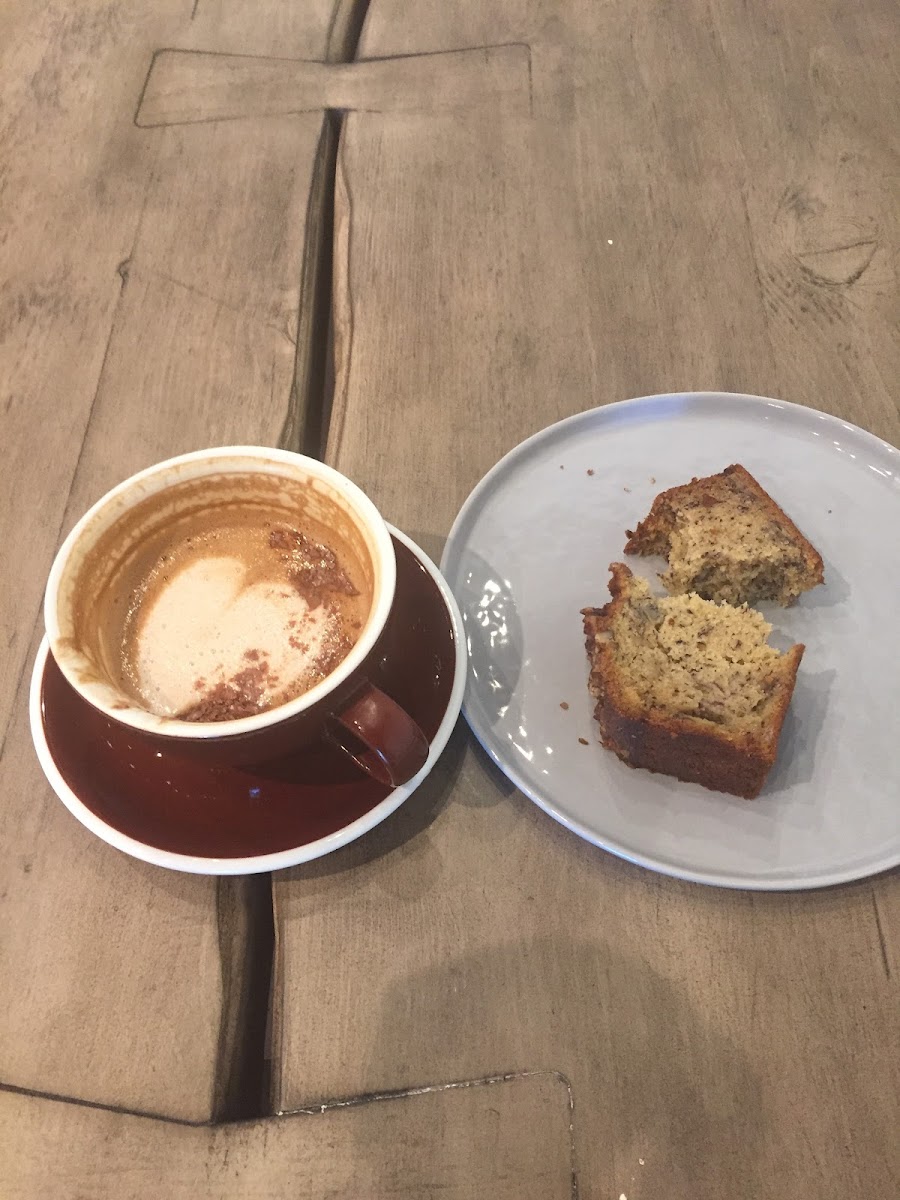 A custom made latte made exactly to my liking and their Carmel French Toast. I got it warmed. This is EXACTLY what my taste buds were asking for! New place and their espresso tastes amazing! The seating is cool too! Update: I went again with my daughter today and she had the red velvet cupcake, which was divine! She had the hot chocolate as well and thoroughly enjoyed it!